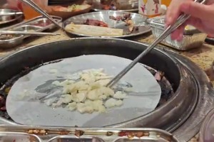 网友在烧烤店做起了炒菜,四个人配合的超默契